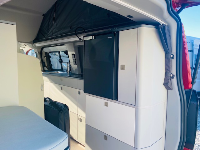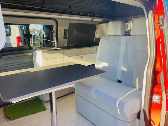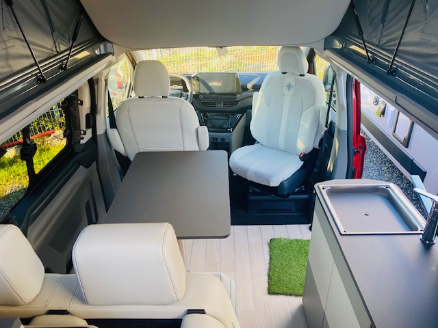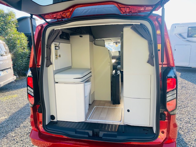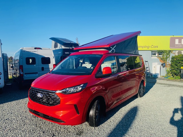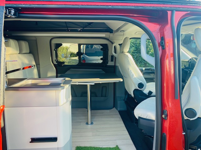 Van 4 places 4 couchages avec banquette électrique dépliable en lit + lit pavillon avec tout le confort d’un ccar : chauffage stationnaire, eau chaude, douche intérieure ou extérieure, WC fixe à cassette… sur un nouveau Ford Tournéo Custom suréquipé en éléments de confort et de sécurité